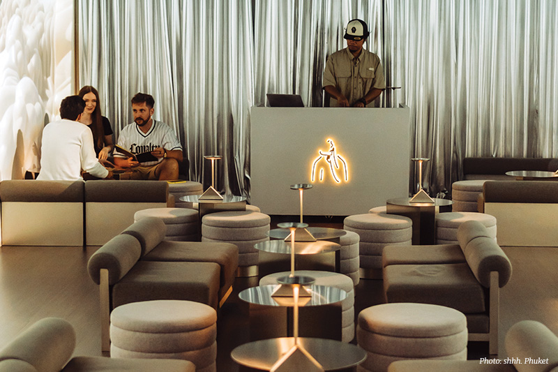 The mood shifts to quiet intimacy in shhhh. Phuket, a hidden treasure housed in a traditional Sino-Portuguese mansion. Here, floor-to-ceiling wall projections create a dramatic dreamscape for immersive conversations over delicious cocktail classics.